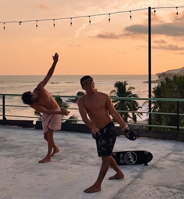 En el centro de formación se realizan clases grupales donde los alumnos practican técnicas a través del entrenamiento funcional y el surf skate.